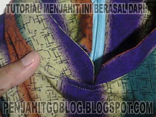 - selanjutnya tempel daun kerah yang sudah jadi dengan kaki kerahnya lalu jahit, mulai dari bagian tengahnya ke ujung kiri, lalu mulai lagi dari tengah ke ujung kanan